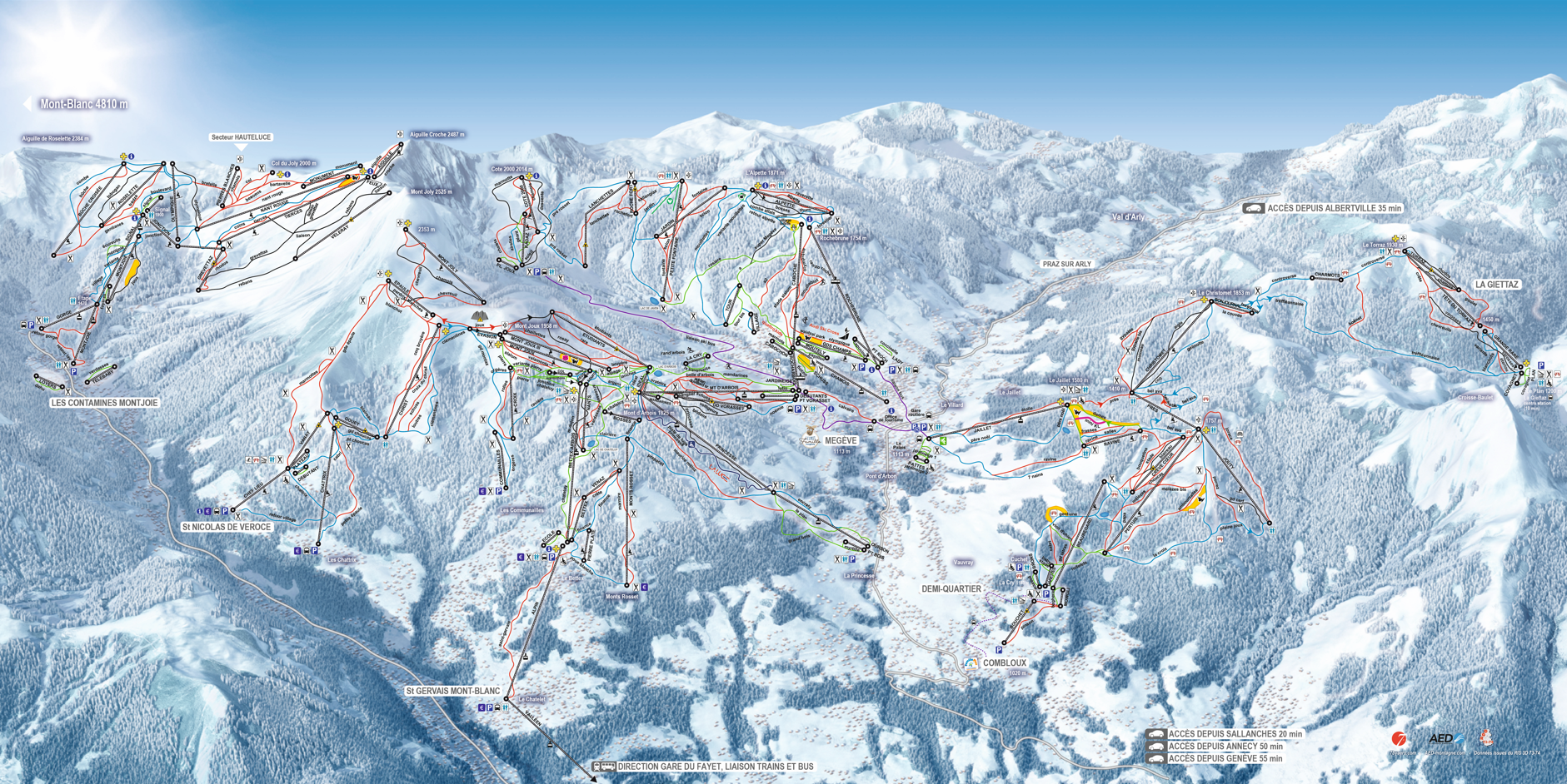 Domaine Évasion Mont-blanc, accès à Saint-Gervais Mont-Blanc, Saint-Nicolas, Megeve, Les Contamines - Hauteluce et Combloux - La Giettaz.